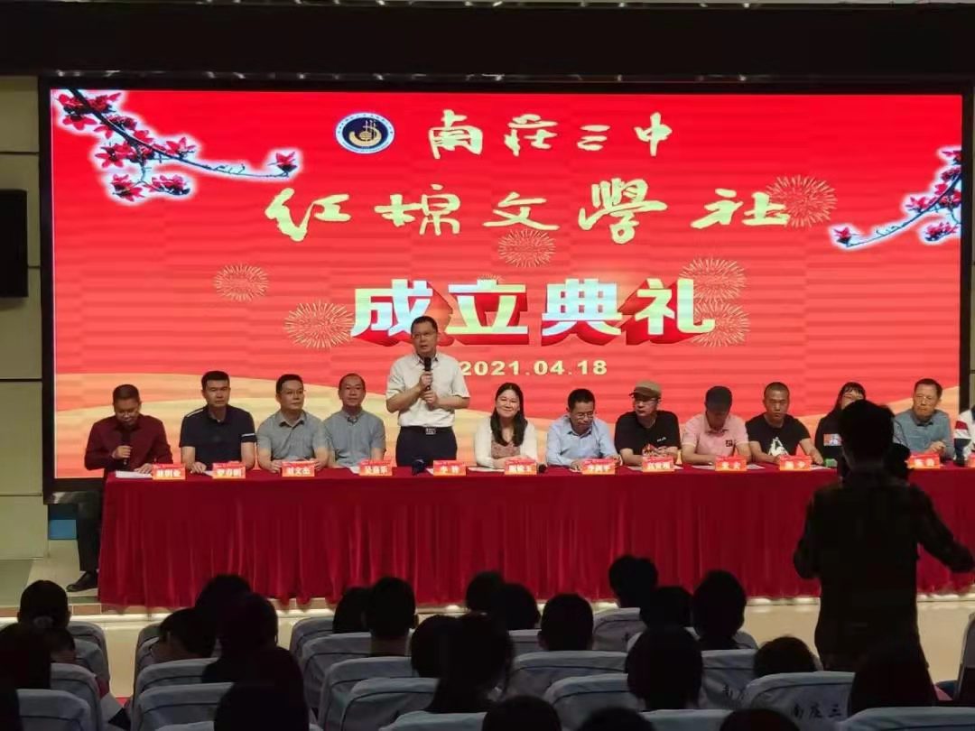 2021年4月18日上午,广东佛山禅城区南庄三中学红棉文学社成立仪式在学校阶梯室隆重举行。出席成立仪式的领导有区教育局教研室李剑平、佛山科学技术学院人文与教育学院副院长谢敏玉、佛山市教育学会理事黎惠英、《文化参考报》执行主编高世现、禅城区作家协会副主席杨夕、禅城区作家协会副秘书长来去,以及佛山市禅城区南庄镇第三中学校长李锋、党总支专职副书记、副校长吴嘉乐、副校长刘文杰、罗春明等,成立仪式由南庄三中语文教研组组长林明业主持。 红棉文学社聘请陈涛老师为指导老师,首任社长则由刘芷莹当选。 红棉文学社首任社长刘芷莹发言 南庄三中校长李锋首先代表学校致辞,在讲话中指出:“文化传承是中华文化的命脉,他强调,南庄三中不仅要有科技创新的外显,还要有文化沉淀的内秀。未来将会继续关注并加大对红棉文学社的支持力度,希望红棉文学社就像红棉一样如火绽放,越办越好。而红棉文学社的成立,也将成为南庄三中校园文化建设、作文特色发展的一面鲜艳旗帜,也将为学校广大师生特别是阅读爱好者和写作爱好者打开一扇文学之窗,让他们能在追逐梦想的道路上,不断奋进,让他们的梦想能在文学的沃土里萌芽、生长、绽放。” 南庄三中校长李锋致辞 红棉文学社指导老师陈涛宣读了首批32名文学社成员名单,红棉文学社首任社长刘芷莹则就文学社的成立进行了发言,介绍了红棉文学社今后的活动内容,表达了对红棉文学社今后发展的美好祝愿。她表示,除了在社内举行写作及游学之外,红棉文学社还将在校内推动创建书香校园,通过组织举办读书分享和诗歌朗诵等文学活动,希望将红棉精神辐射至全校。 紧随其后,南庄三中校长李锋给驻校作家高世现、谢敏玉、李剑平、黎惠英、杨夕、来去颁发聘书和揭牌仪式,并与驻校作家、指导老师和文学社社长共同为红棉文学社揭牌。