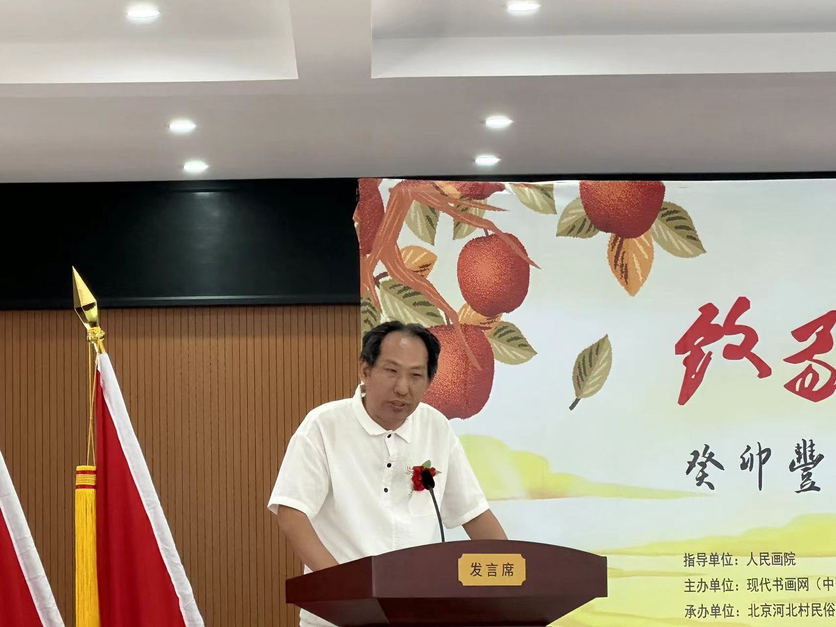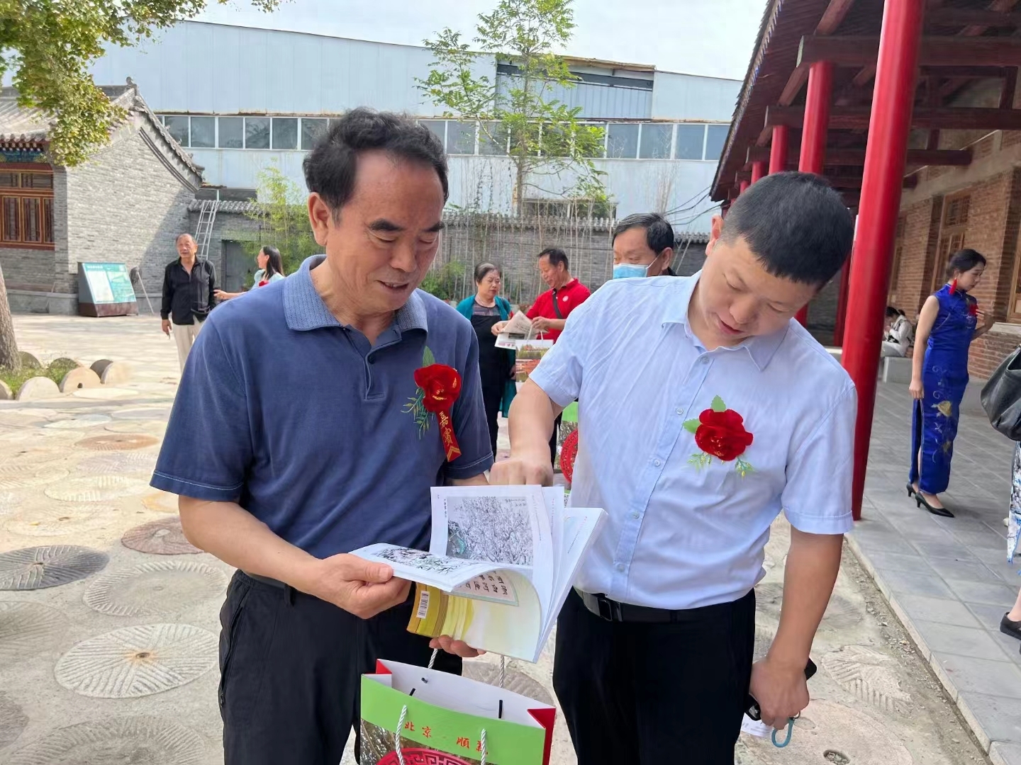 ![]() 还有赵君、吴景晨、程文鸣、刘友春、袁树元、苗力博、林清泉、支来柱、周龙、吴进初、叶长福、何海英、杨明、雨石、刘玉海、郭美仙、翟天安、赵丽霞、周军、袁德玉、李清水、朱洵、张俊瑜、陈之东、周翌芳、张国臣、姚星宇、郭谦、王建军、杨耀光、王劲华、蔡利全、徐秀菊、万晓筠、焦明耀、丁学洲、李雪鸿、朱洵、刘悦、门广海、吴林烨等等书画名家参加了此次活动,沐浴了翰墨芬芳。 ![]() 赵长松、贾文龙、陈培伦、崔根峰、杨廷新、张仕森、叶建华、笑琰、李月、金治国、贺严生、黄琳等欣然携手为现代书画网展览活动中心铜牌揭幕。该活动中心将在河北村民俗园落地生根、开花结果。这里的“万个磨盘书万福”、成片石林留墨宝、楼台亭榭题锦绣等将向全球书画家发出邀请、征集稿件,期待有识有志有德有艺者捷足先登、扬名史册。这里将成为书画家、作家、文友的乐园,欢迎个人书画展览、新书发布、学术研讨、专题培训在这里举行,民俗园和现代书画网展览活动中心将会提供价廉收费、优质服务。 ![]() 此次书画名家邀请展共收到书画作品190多幅,入展作品150多幅,展出时间暂定一个月。与会代表兴致勃勃地参观了书画名家作品展览,大家纷纷为名家作品点评点赞、合影留念。一本本散发着油墨清香的《癸卯丰收节书画名家邀请展作品集》和入展荣誉证书让入展书画家喜出望外、爱不释手。 ![]() 中国退役军人就业创业服务促进会红色文旅产业专业委员会、北京正念正心国学文化研究院艺术学研究院、《中华国粹》杂志社、《作家报》社艺术世界、中国文艺名家展览馆、北京顺义书法协会、北京桃花川书画院、北京徐双喜榜书艺术中心、大国艺术家网、世界艺术中心中国书画院、北京宣和书画艺术研究院、安阳北关区美术家协会等单位给予了大力协助。