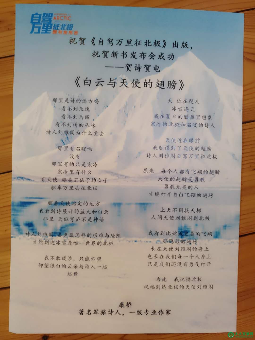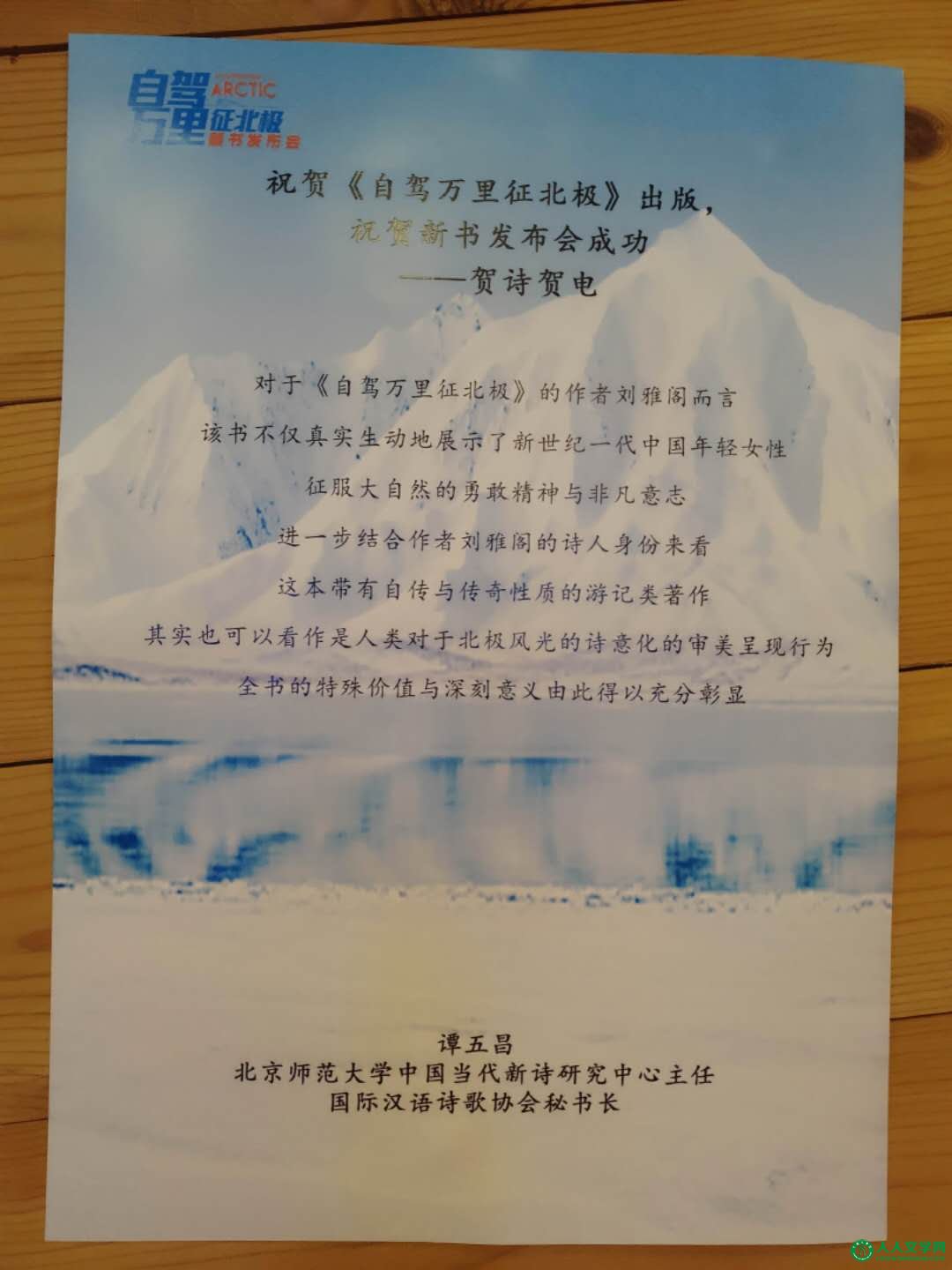 中国作协前副主席,著名作家、诗人黄亚洲为《自驾万里征北极》题写书名;中欧国际工商学院前院长朱晓明教授,中欧EMBA课程主任陈杰平教授,著名诗人学者翻译家,世界诗人大会常务副秘书长北塔与屈原后裔,著名诗人、辞赋家屈金星先生分别为《自驾万里征北极》作序。![]() (特邀嘉宾沈天诗、韩志毅、关铁锤) 本书的主要作者刘雅阁,她是诗人、作家,2017中国诗歌形象大使;中国通俗文艺研究会理事;2018中国诗歌春晚新闻中心主任、媒体总监;人人文学网主编,微诗刊主编。曾自驾车旅行世界数十个国家和地区。 ![]() (“先读为快”的前五名读者被授予红丝带) ![]()