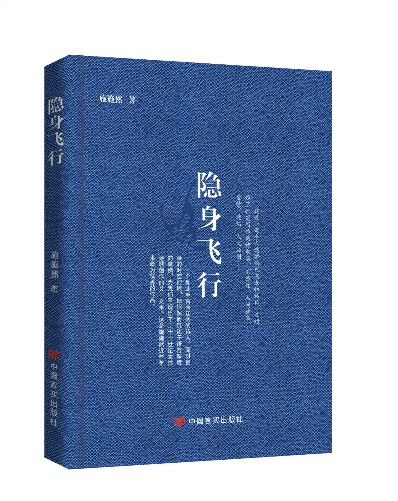 日前,诗人施施然第五部诗集《隐身飞行》由中国言实出版社出版。这是施施然近些年来优秀作品的结集,是一部令人迷醉的充满女性话语、又超越了性别写作的诗歌集,有旅途、人间逸事、爱情、迷幻、人文版图……面对复杂的时空幻境,施施然坦然而沉迷于语言深度的旋梯,为读者呈现了二十一世纪女性诗歌创作的又一文本。
