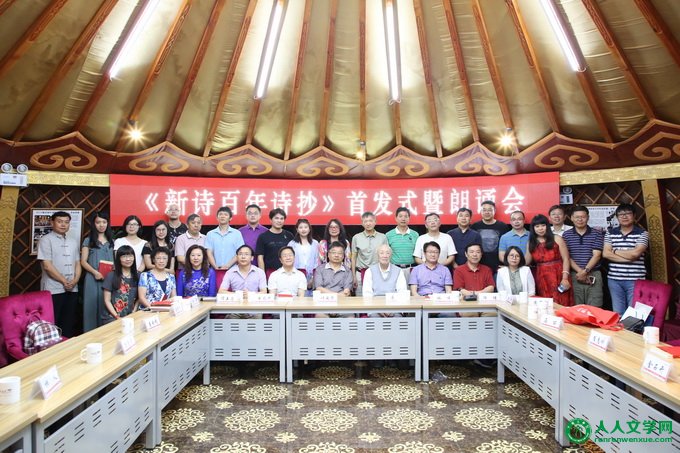 《新诗百年诗抄》首发式在北京草原文化部落举行 人人文学网讯:2017年7月1日下午,由北京师范大学中国当代新诗研究中心主任、著名诗评家谭五昌教授主编,由浙江人民出版社出版发行的《新诗百年诗抄》首发式暨朗诵会,于北京草原文化部落隆重举行!屠岸、叶延...