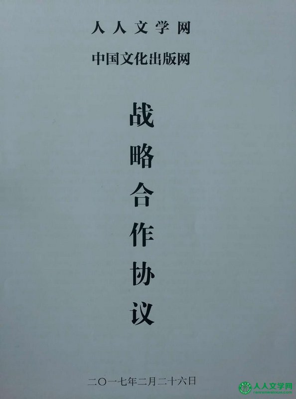 2016年2月26日,人人文学网与中国文化出版网在天津签订战略合作协议。人人文学网总编与中国文化出版网总编徐传洲在天津签订战略合作协议。中国文化出版网负责编辑出版《人人文学》杂志,徐传洲先生任社长等职。《人人文学》大型文学刊物初步定为季刊。在出版...