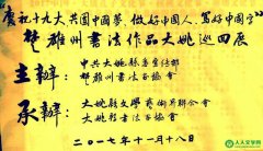 “庆祝十九大,共圆中国梦,做好中国人,写好中国字” 楚雄州书法作品巡回展,于2017年11月18日上午12:00,在大姚县文化馆展厅圆满结束。中共大姚县委宣传部和楚雄州书法家协会联合主办,由大姚县文和大姚县书法家协会共同承办,楚雄州书法家协主席团董华...
