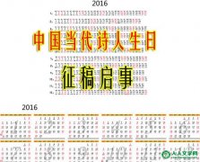 [今日头条] 《中国当代诗人生日》(2016卷)征稿启事 (欢迎转载,欢迎投稿) 日期:2015-11-23 00:40:29 点击:580 好评:4