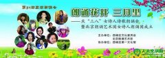 [文化新闻] 朗诵花开三月里——庆“三八”女诗人朗诵会即将上演 日期:2017-03-02 13:47:45 点击:1280 好评:4