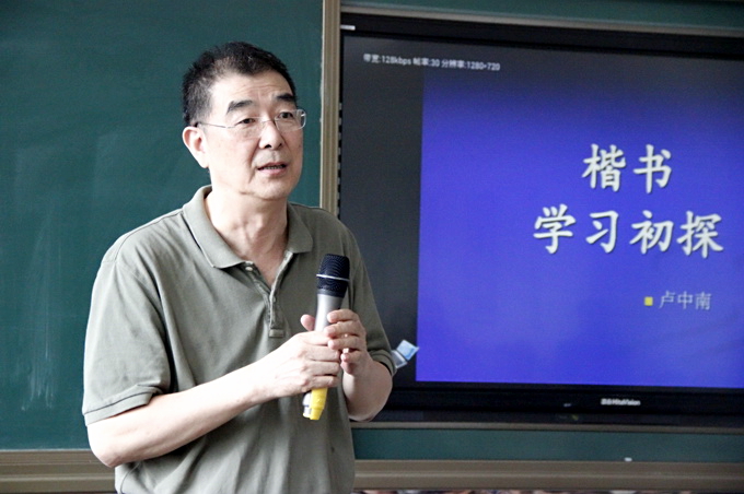 著名书法家卢中南老师,在书坛享有极高的声誉,他师从欧阳中石先生,长于欧体,深受广大书法爱好者的喜爱,他根据自己多年的书法经验总结整理了一套书法课堂的教学实践方法,他独特的教学经验传授为参加授课的书法教师们带来很多启发。