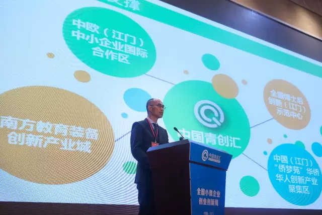 本次活动邀请了中央企业代表、全国小微双创示范城市代表、海内外知名创业创新团队、创投机构等参加,希望促进海内外项目、技术、人才、资金等创新资源对接,推介国内创业创新环境,引进优质创业创新项目,承接创业创新投资,营造服务小微企业“双创”的浓厚氛围。 “‘青’是青年福地,孕育双创;‘创’是创造环境,引领双创;‘汇’是汇力聚能,圆梦双创。我们以成为首批全国小微双创基地示范城市为东风,着力把江门打造成广大有志青年、创业青年奔赴的福地和热土,推动‘北有中关村,南有青创汇’的新格局。”邓伟根从战略定位、政策体系、人才吸引、综合改革措施等方面介绍了江门市在推动“双创”上所做的努力。
