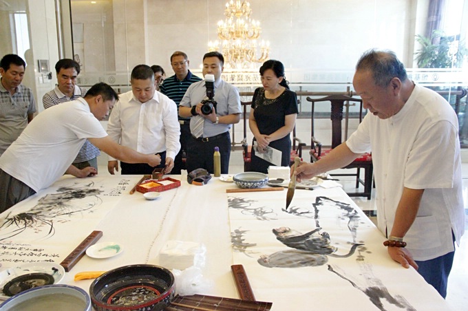书画网讯:2016年8月28日,为纪念张登堂同志逝世一周年,弘扬中国国画艺术,北京潞通堂装裱有限公司、恒基兆业有限公司、北京市通州区文学艺术界联合会共同举办“纪念张登堂同志逝世一周年座谈会"。通州区人大主任李玉君,通州区政协主席赵玉影、区政协常务副主席张振泉、区文联主席樊淑玲、北京潞通堂有限公司总经理董树旺、北京上海大众汽车通州销售服务有限公司总理李桂生,艺术家代表刘明、黄均合、马泉、王志学、曹俊义等领导和艺术家出席本次活动。 ![]() 著名艺术家张登堂,男,山东人,一九四三年出生,山东聊城人,擅国画。中国美术家协会会员、山东省美协理事、济南市美协副主席、山东画院山水画研究会会长、山东大学美术考古研究所兼职教授、深圳大学艺术学院客座教授、山东省政协委员、山东省政协联谊书画院副院长、河山画理事、济南画院名誉院长、一级美术师。 ![]()