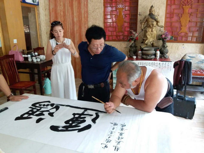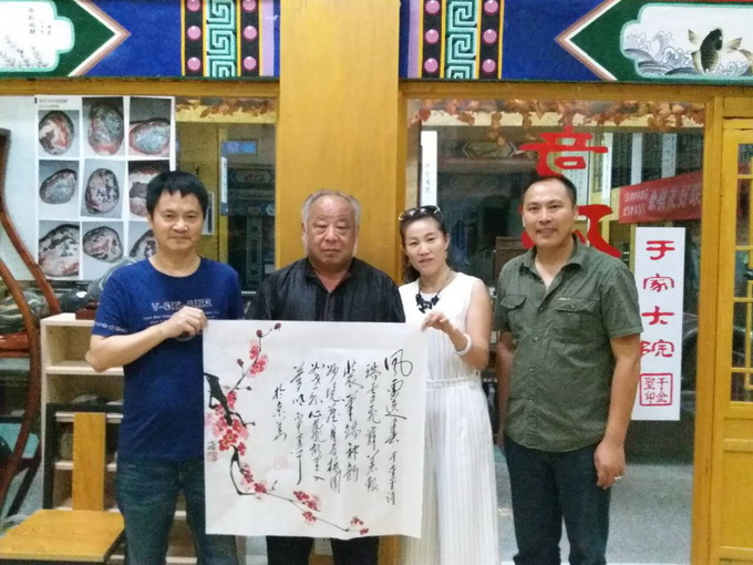 人人文学网讯:2016年9月12日于家大院诗书画院挂牌。挂牌当天,由诗人新秀于金圣、著名书法家黑子和知名画家于海滨创作的诗书画三维一体的“记忆流沙”刚完成就被天一盛大房地产开发有限公司董事长孙宪彪以60000元人民币收藏;由诗人新秀于金圣、毛体传承人著名书法家黑子和著名画家于少杰创作的“风雪送春”也被北京宝元绿键国际贸易有限公司总经理刘春梅当天以30000元人民币购买。诗书画三维一体的作品如此受欢迎,是作为发起人于家大院总经理于金圣预想不到的,也是各位书法家和画家始料不及的。在当下书画市场低迷的大背景下,能有如此强进的表现,作为“诗书画三维一体”构想提出人于金圣是没有想到的,他在成交后感想颇多,信心实足的对记者说:“我敢断言,用不了3年,文化产业将远远超过房地产业!”并向我们透露:“于家大院准备在10月1日之前挂牌中国军旅书画研究院创作基地、北京诗社创作基地、北京市石景山区作协影视创作部,并担任影视创作部副主任,同时告诉我们在国庆节期间,于家大院将搞一次为期15天的大型诗书画展览”。我们在预祝成功的同时也相信:与时俱进、敢于创新的于家大院将在不久的将来成为名副其实的文化大院、成为传统文化孵化园,叫我们一起期盼,一起关注,一起拭目以待吧!