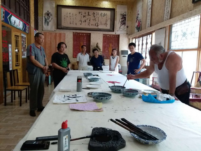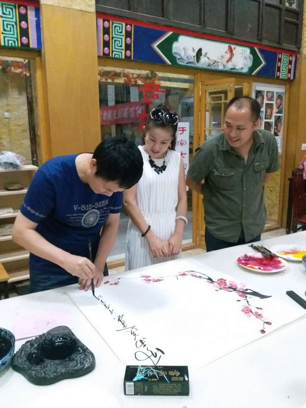 诗书画三维一体首战告捷! 人人文学网讯:2016年9月12日于家大院诗书画院挂牌。挂牌当天,由诗人新秀于金圣、著名书法家黑子和知名画家于海滨创作的诗书画三维一体的记忆流沙刚完成就被天一盛大房地产开发有限公司董事长孙宪彪以60000元人民币收藏;由诗人新