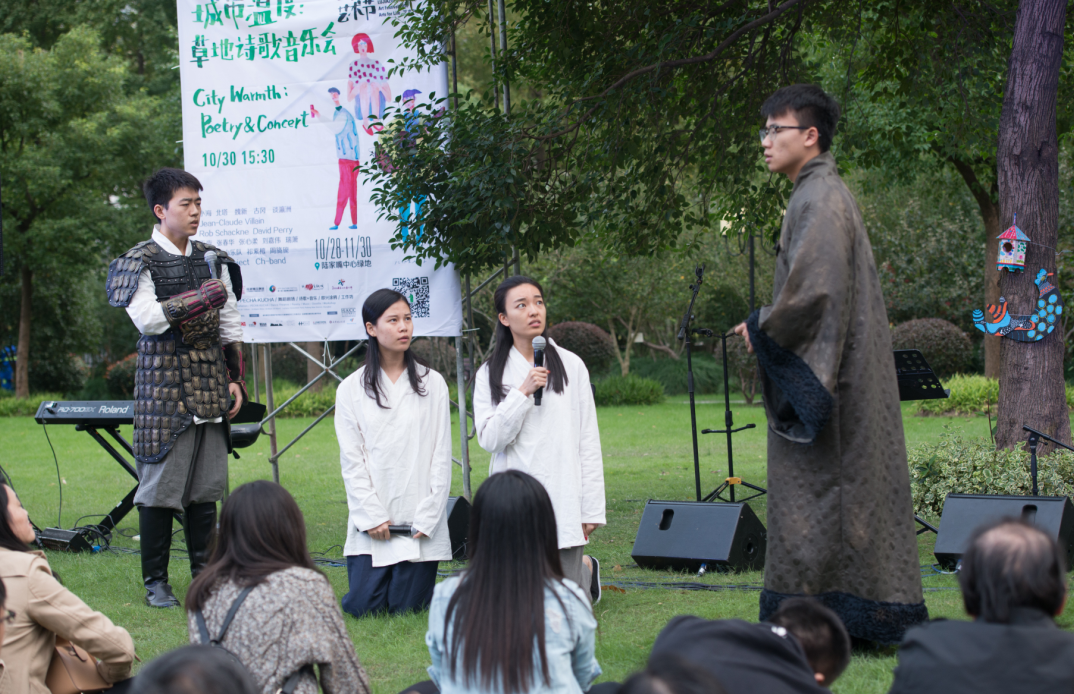 ——第三届草地诗歌音乐会在上海浦东陆家嘴举办 ![]() 瑞箫、北塔、rob互译朗诵 ![]() 北塔与克劳德先生 ![]() 法国诗人让克劳德和澳大利亚诗人罗伯沙克尼在交流 ![]() 诗人瑞箫、谈瀛洲、古冈、刘嘉伟在诗会现场 ![]() 复旦剧社 ![]() 诗人小海 ![]() 魏新 ![]() 千夜 ![]() 嘉宾合影 人人文学网讯:2016绿岸艺术节之第三届草地诗歌音乐会于2016年10月30日 下午3:30分在上海浦东新区陆家嘴中心绿地举行。著名诗人小海、北塔、魏新、谈瀛洲、古冈,诗人张春华、法国诗人让-克劳德-维兰、澳大利亚诗人罗伯-沙克尼、年轻诗人千夜、刘嘉伟等参与此次草地诗会。本届草地诗会诗歌策展人是诗人瑞箫。此外,蒋明和空山乐队、祁紫檀、周旖旎、陈知的游园惊梦project,来自台湾的歌手张心柔、来自美国伯克利音乐学院的唱作人Sarah-ChL和她的Ch-BAND乐队,来自复旦剧社的周轩毅,刘承昊,肖妍欣,张嘉匀在诗会现场也做了精彩的表演。同济诗社、鹤鸣诗社等上海高校文学联盟的同学们也来到了诗会现场。 今年的草地诗会通过诗人朗诵、歌手弹唱、和观众对话互动等方式进行。第一单元年轻诗人千夜、刘嘉伟、来自美国伯克利音乐学院的Ch-BAND乐队的精彩表现为草地诗会带来了阳光;第二单元复旦剧社的同学们为大家表演了谈瀛洲教授创作的诗剧《梁武帝》选段;第三单元由诗人、翻译家北塔主持,中国诗人北塔、瑞箫和法国诗人让-克劳德-维兰、澳大利亚诗人罗伯-沙克尼等进行了现场互译朗诵。莎士比亚研究专家谈瀛洲、澳大利亚诗人罗伯还用中英文朗诵了莎士比亚的十四行诗,台湾歌手张心柔演唱了鲍勃迪伦的歌曲,以此向大师和前辈致敬。第四单元由诗人、学者魏新主持,诗人古冈、魏新、张春华等分别朗诵了他们的代表作和新作。诗人小海为本次草地诗会压轴朗诵他的代表作《北凌河》。诗会从阳光灿烂的下午一直持续到华灯初上的夜晚,美好的诗歌给高楼林立的陆家嘴金融城带来了绿意和温暖。诗会现场还布置了印有诗人诗句的诗歌墙等众多现代装置艺术。 草地诗会以诗为主题,一贯提倡诗歌与多种艺术门类的融合,诗歌结合音乐、戏剧、现场装置艺术,让诗的形式得以延展、变化,让诗意诉诸于视觉和听觉,以展现出诗歌的丰富性,从而为观众呈现出一种更新鲜、更当代诗歌体验。草地诗会主要面向的是陆家嘴金融区及周边的白领人群、年轻人和都市的文学爱好者。其宗旨在于通过一种开放性、亲近的诗会形式,让人们打破藩篱,重新回到诗歌和文字的场域,为城市生活注入诗意。 陆家嘴草地诗会(简称草地诗会)是陆家嘴首个原创诗歌主题公益项目,也是陆家嘴首个以推动中国当代原创诗歌为己任的户外诗歌活动。由上海正午文化艺术中心和著名诗人严力、瑞箫共同发起,是陆家嘴金融文化节、陆家嘴户外艺术节的组成部分。首届草地诗会于2014年举办,获得良好社会反响,解放日报、中新网、和讯网、财经中国、社会科学报、新浪、腾讯、搜狐、诗歌报、诗生活诗通社、作家网等多家媒体纷纷给予报道。 草地诗会坚持原创诗歌和诗人原声朗诵分享,同时强调公益与跨界。所有参与诗人都不计稿酬,诗人们为民众朗读一首自己的诗,让人们能够更加了解诗歌、重拾对诗歌的热爱。本届草地诗会上,诗人艺术家和民众们还为病危的上海诗人箫鸣募集了部分治疗善款。 ( 张瑞燕 整理) |