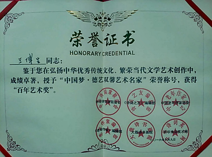 ![]() 诗人王博生获“德艺双馨艺术名家奖” 【人物简介】