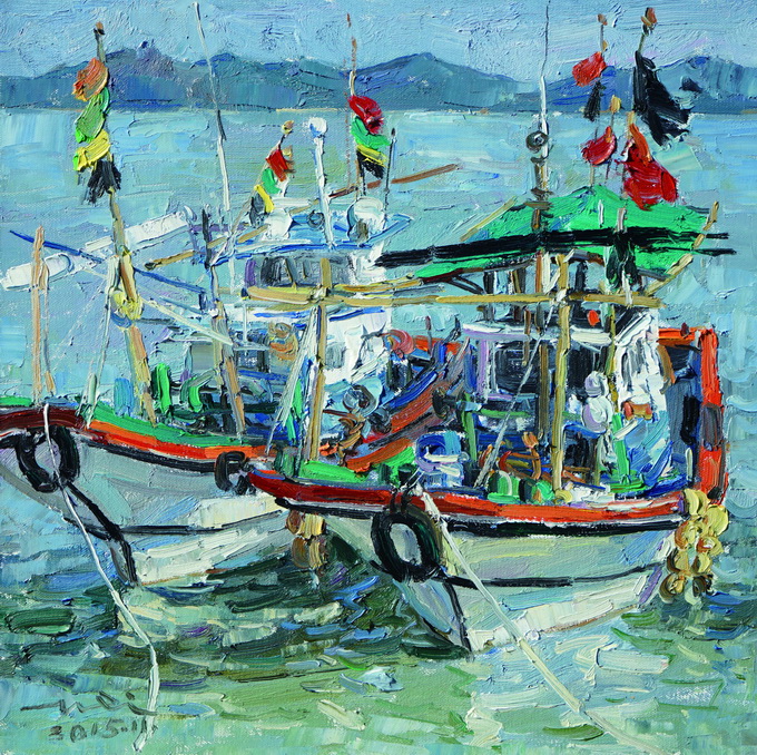 他的日程表安排得如此紧凑,且看他一个月内的主体活动:10月14日,澳大利亚维多利亚州水彩画协会在大连举办作品展; 10月18日,应香港油画研究会会长林鸣岗先生邀请,参加一带一路海丝行两岸三地油画家福建写生活动;10月28日,为大连市中小学骨干美术教师在