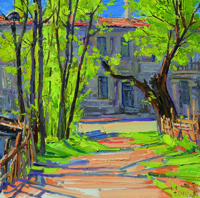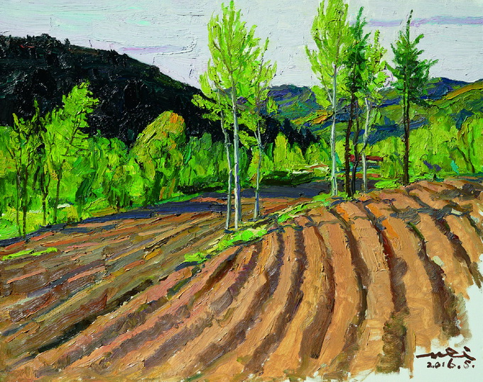有人问,大仲马最得意的作品是什么?答案是小仲马。我们不妨举一反三,王嵬最得意的作品是什么?答案是王大拙。正是在王嵬的濡染带动下,大拙如今已成长为国内80后油画界代表性画家。记得大拙小时候不正心吃饭,因为有零食作担保。王嵬索性严厉地将零食断掉,该吃饭不吃饭只有饿肚子。大拙饿了两回便叫唤了,以后吃饭狼吞虎咽。从强迫到自觉,大拙终于长大成人。他追随着父亲写生,他独立行走于阳光大地之间。大拙先后就读于美国旧金山艺术大学以及比利时安特卫普皇家美院油画系,画作先后入选“可见之诗——第二届中国油画风景作品展”“学派与传承——2016中国写意油画学派首届优秀青年艺术家‘凤凰奖’作品选展”等。