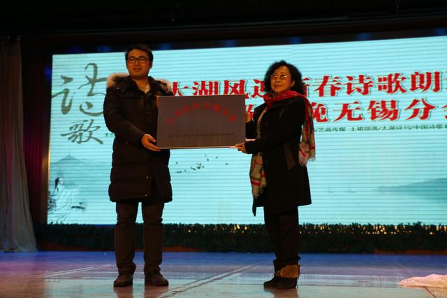 无锡诗歌学会副会长、中国诗人主编安娟英代表无锡诗社接受了中国诗歌网江苏站站长孟陬的授牌。