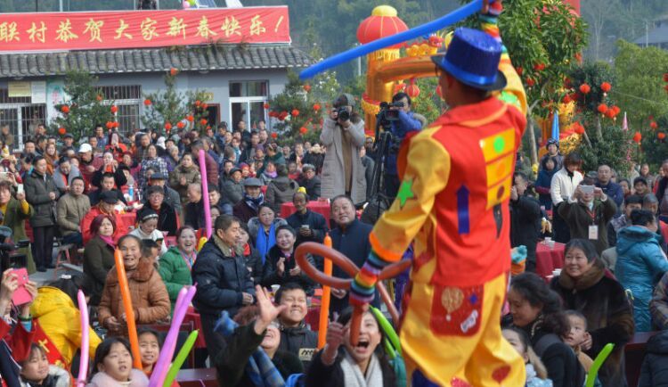 下午2点联欢会开始,舞蹈、歌伴舞、小品、杂技、独唱、合唱、方言、器乐合奏、独奏、川剧等丰富多彩的文艺目节,把乡亲们带进了浓浓乡土气息的艺术海洋,饱赏了一场艺术大餐,村民们纷纷感觉“演得很好,内容也好,很有档次,平时很难看到”。 以下是抓拍的部分精彩瞬间与大家分享。