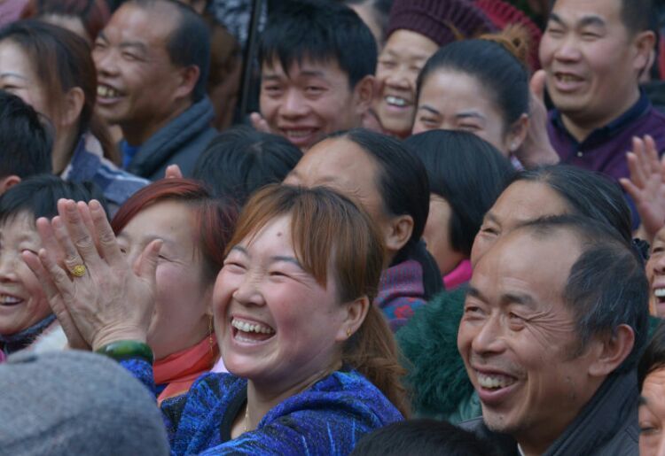茶话会上村民们掌声阵阵。
