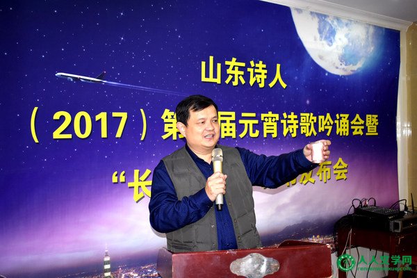 人人文学网、中国诗歌网山东频道、艺术山东网联合报道2月10日,丁酉年正月十四,由中国诗歌网山东频道、《山东诗人》杂志社、“长河文丛”编委会主办,山东诗人书画研究院、艺术山东网、《长河》杂志社协办的山东诗人(2017)第二届元宵诗会暨“长河文丛”新书发布会,在济南新东方大酒店隆重举行。马启代主持了下午的新书发布和座谈,吟诵晚会由诗人周永朗诵桑恒昌先生的诗作拉开序幕。