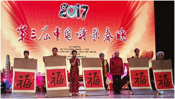 群英聚会 飒爽英姿 14日的诗歌春晚气势磅礴,精彩动人,晚会共分为凤凰于飞、天下祯祥;吉光片羽 、百年飞扬;携爱诗奔、与梦同翔;雄关漫道、中华脊梁;文化自信、历史沧桑;明月乡思、诗与远方六个部分。 瞿弦和、殷之光、高峰等著名朗诵家相继登场,朗诵了李白、戴望舒、艾青等名人的名篇佳作。