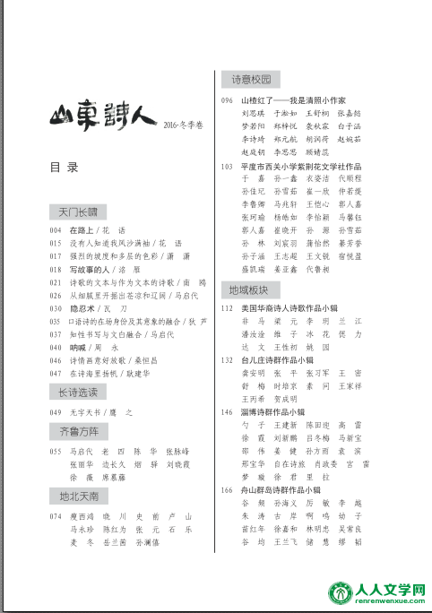 《山东诗人》2016冬季卷目录