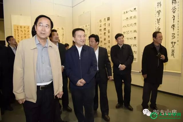 北京市文联党组书记陈启刚、副书记刘开阳,中共平谷区委书记王成国,平谷区人民政府区长姜帆,区人大主任刘军,区政协主席闫维洪,平谷区委常委、宣传部长王红艳,中国书协理事、北京书协驻会副主席兼秘书长田伯平,各郊区县文联、书协负责人和各界人士350余名,出席开幕式并参观了展览。
