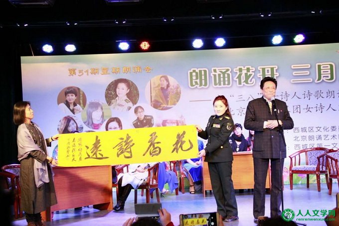 ![]() 庆“三八”女诗人诗歌朗诵会暨女诗人朗诵团成立仪式 在北京西城文化中心成功举办 人人文学网讯(摄影 王博生)“最是一年春好处,绝胜烟柳满皇都”,为迎接“三八”国际妇女节的到来,2017年3月5日,由北京市西城区文化委、北京朗诵艺术团精心策划的第51期星期朗诵会——庆“三八”女诗人诗歌朗诵会,暨女诗人朗诵团成立仪式在北京市西城区文化中心小剧场成功举办。伴着美妙的音乐、动听的朗诵声,歌颂女性的诗歌从北京西城文化中心传出,荡漾在温暖的春日里。 这台朗诵会不同寻常,朗诵者都是近年来活跃在我国诗坛上卓有成就的女诗人。她们不仅会写诗,而且热爱朗诵、善于朗诵。她们是中国作家协会会员王妍丁、海田、安琪、戴墨、娜仁琪琪格、关雎、中国诗歌学会会员潇潇、爱斐儿、杜杜、河北作家协会会员武眉凌,上海社会科学院张瑞箫、中国音乐文学学会会员阿紫,中国艺术研究院博士后、原声诗社社长舒子原,诗意中国总撰稿人非也。 ![]() 女歌唱家叶霁雯、冯桂荣、张爱等为朗诵会锦上添花,献上《玛依拉变奏曲》《美丽的西班牙女郎》《一杯美酒》《阳光路上》等耳熟能详、久唱不衰的经典歌曲,博得掌声阵阵。 ![]() 朗诵会结束后,著名朗诵艺术家殷之光宣布北京朗诵艺术团女诗人朗诵团正式成立。女诗人朗诵团的成立开创了中国朗诵史上的先河,它壮大了朗诵的队伍,丰富了朗诵园地,著名朗诵艺术家殷之光先生任北京朗诵艺术团女诗人朗诵团艺术总监,中国作家协会会员王妍丁任北京朗诵艺术团女诗人朗诵团团长,中国作家协会会员海田任副团长。 ![]() 成立北京朗诵艺术团女诗人朗诵团。这个议题在新年前,殷之光老师就多次在电话中跟我探讨过。女诗人本身就具有一种美好的象征。那么,女诗人又能登台朗诵,演绎自己的诗歌作品。无疑又放大了诗与诗人自身的美。 这些年,我也经常被邀请参加各种形式的朗诵会。所以,殷老师跟我提议能不能搞一个女诗人朗诵艺术团,为优秀的女诗人搭这样一个平台,大家凝聚在一个团队里,借助朗诵这种艺术形式,弘扬正能量,我觉得是件特别有意义的事。 那么,殷之光老师又提议让我来做女诗人朗诵艺术团团长。我觉得,这既是对我的一种信任,也蕴含着一种期待,就是怎样打造一支纯粹的女诗人朗诵队伍,怎样和大家一道不忘初心,服务社会,传递温暖与力量,传递良知与美好,分享生活的爱与诗意,想想,这个压力也是蛮大的。 孔子说过,诗,可以兴,可以观,可以群,可以怨。从最早的《诗经》开始,诗歌本身就是我们生活的一部分,也是一个人精神世界的立体呈现。朗诵,其实是对诗歌的一种再创作,和情感的再升华。由于音韵的美感,更易于为大众所接受。 那么,女诗人朗诵艺术团,将来可能更趋于做一些公益事业,比如,我们可以走向校园,走进社区,走进工厂,走进军营,甚至走向山区,走向敬老院,走向每一个需要聆听的人群,分享诗歌自身的温度与品质,分享诗人自身的柔美与风骨,给心灵带去诗与人的阳光雨露。 那么,这个队伍的构成,我们就会有一个较为严谨的把握,对加入团队的成员需要一个严格的筛选,对人品、作品、颜值、口碑等等,都会有一个较高的要求,不会因为她是一个诗人,就可以随便加入,也不会因为这个诗人的名气还不够大,就不吸纳。总之,我们会有一个作品、人品、艺术修养等方面的综合考量。 记得习近平曾经讲过这样一段话:“当高楼大厦在我国大地上遍地林立时,中华民族精神的大厦也应该巍然耸立”! 置身这样一个大时代,我们女诗人朗诵团,也要对这个时代有所担当,也要用美好的诗心、艺德,传承与弘扬我们的民族精神,弘扬真善美,传播有温度,有筋骨,有道德的精品佳作。杜绝低俗、庸俗、恶俗的作品。我们将把女诗人朗诵团,用心打造成一支有高尚情趣,悲悯情怀,优雅品格,为大众所喜闻乐见的品牌团队!时间关系,今天就先说到,以后有机会再深入这个话题。谢谢大家! ![]() 上世纪60年代,北京的“星期朗诵会”曾火爆一时,演出场场爆满。如今,在以殷之光为首的众多朗诵艺术家的努力下,“星期朗诵会”重新登上首都舞台,西城区文化中心缤纷剧场随之更名朗诵剧场。“星期朗诵会”定期在北京朗诵剧场进行公益演出,每月一期,每期上演不同主题的作品。 ![]() 女诗人朗诵团的成立为“星期朗诵会”注入新的活力,让更多人感受诗歌和朗诵艺术的魅力,燃起民众对诗歌和朗诵艺术的激情,是“星期朗诵会”不变的宗旨。 ![]() ![]() ![]() ![]() ![]() ![]() ![]() ![]() ![]() ![]() ![]() |