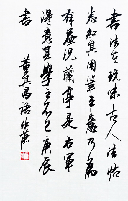 当今某些比较年轻的书法家们,见面必言三件事:国学、禅学、茶。然而坐下来细谈,不过是写了“上善若水”和“厚德载物”以及几首唐诗宋词,这便是国学了。然后,一脸的高深莫测,翘起兰花指,告诉你“我皈依了,信佛了。”当然也有的脏兮兮的人自称信道的。假如是在这位的书房,他给你递来一杯茶,就会告诉你,这茶是专门从特供中央的茶园通过某位将军弄来的,你花多少钱都弄不到。因此,我对某些张口就说“国学、禅学、茶”的书法家们总不以为然。