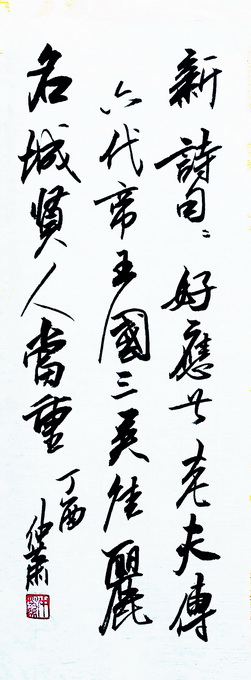 仲萧在书画圈里很有名气。但他自己不以为然,他是那种追求人生精神乐趣和艺术感觉的学者。仲萧不是网络捧出的“网红”,而是一个真情、真诚、真心、真实做学问的人。在国家典籍博物馆讲中国文化美学时,他高屋建瓴,如数家珍,引经据典,娓娓道来,百听不厌;其书画作品立意高远,清爽持重;纵观他历次书画展,书有魏晋、唐宋遗风;画承宋元、明清古韵。引人进入典雅遒劲,淡然忘忧之境。