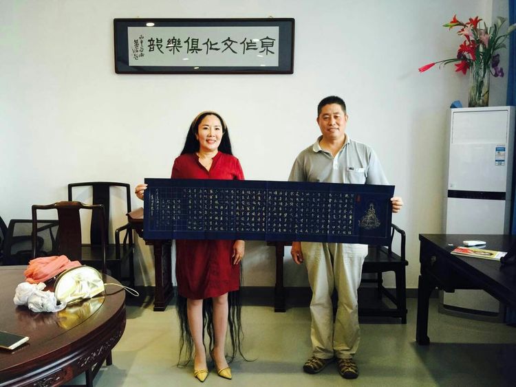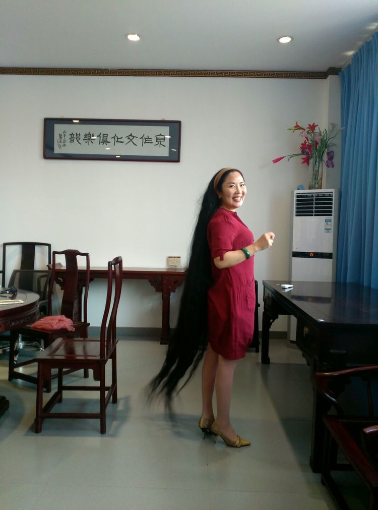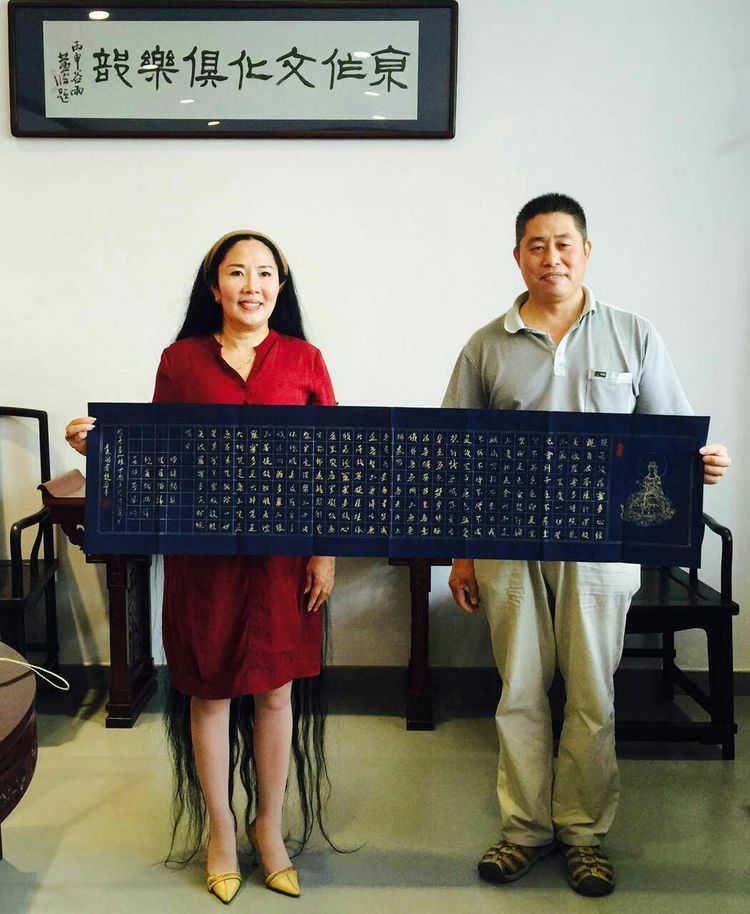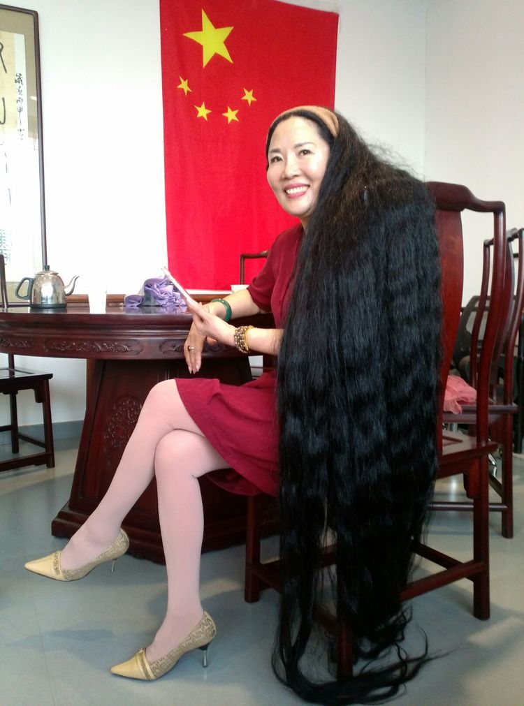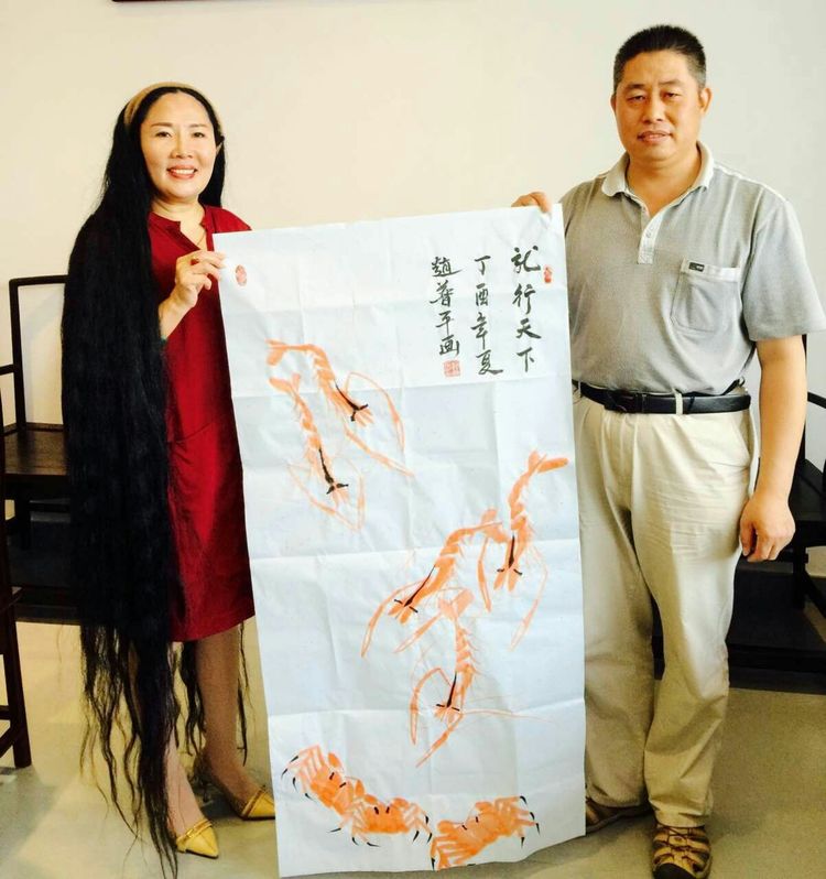 中国第一长发女画家赵普平女士。赵普平,汉族,原籍河南省邓州市人,生于1962年,现居北京。自幼爱好书画,1984年毕业于湖南美术学院。1986以来曾多次拜访名师白石女弟子郭秀义为师,通过指点得到真传,画龍虾、河虾栩栩如生。其主攻白石虾,几十年来,对画虾如痴如醉,对画虾、画牛、画竹子及花鸟情有独钟。