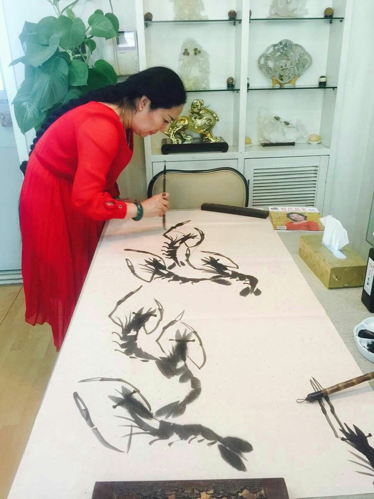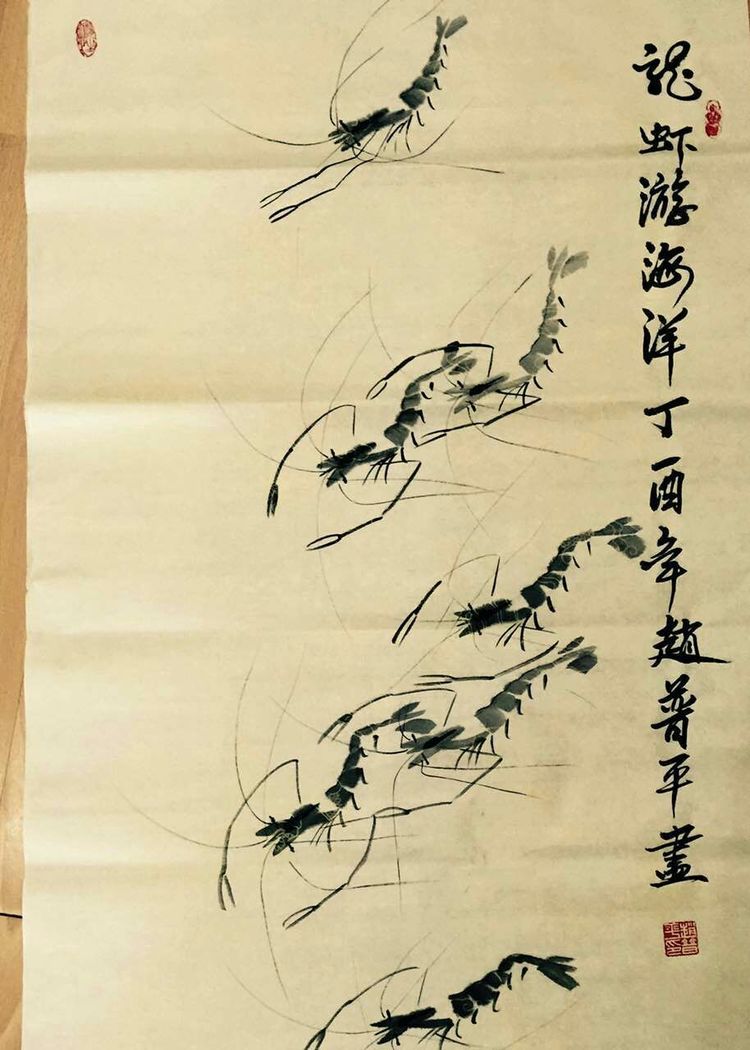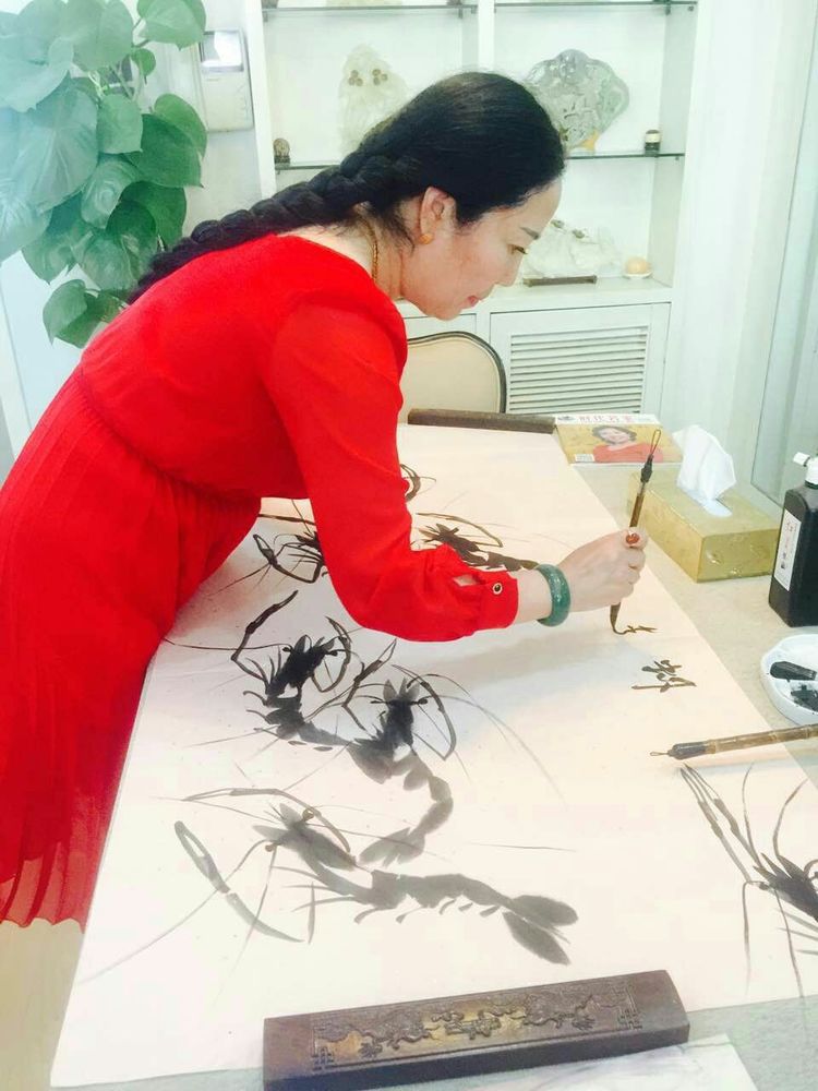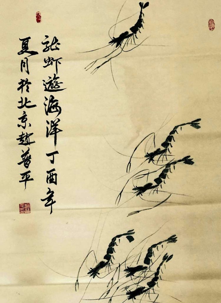 中国第一长发女画家赵普平女士。赵普平,汉族,原籍河南省邓州市人,生于1962年,现居北京。自幼爱好书画,1984年毕业于湖南美术学院。1986以来曾多次拜访名师白石女弟子郭秀义为师,通过指点得到真传,画龍虾、河虾栩栩如生。其主攻白石虾,几十年来,对画