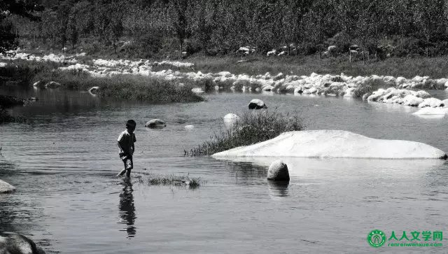天色濛濛,轻雾罩山。我们拥着他到溪滩那口最大的深潭旁,潭水清得发黑,雨脚落在水面上,像筛米花。我侧身打了个水漂,石片如三级跳远,飞到了潭中。潭很深,平时大人一猛子钻不到底,他们说下面有鬼,小孩不敢独来。
