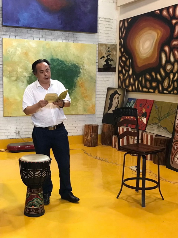 然后,从诗人水云烟开始,大家纷纷深情的朗诵了诗人舒然或别人或自己的诗篇。已故诗人海子的袍弟查曙明 ,不仅朗诵了海子的诗《复活》,还朗诵了舒然老师的《重生》,他觉得《重生》的意向与海子诗歌《复活》甚为接近。他深情并茂的诗歌朗诵,赢得了在场阵阵掌声。期间,轻松,活泼的会场还不时穿插着李长江诗人的吉他弹唱,将气氛推向高潮。