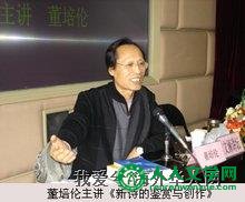 我国台湾著名诗人洛夫曾送给董培伦老师一个条幅,上书“西湖大情人——董培伦”。这大概是因为董老师一生的诗歌创作以爱情诗为主。从1956年开始写诗以来,迄今董老师创作了400多首爱情诗。 历任图书管理员、文化教员、海道测量员、新闻干事,浙江人民广播电台文学编辑,主任编辑,浙江诗人之家副主任,浙江作协诗歌创作委员会副主任。1956年开始发表作品。1992年加入中国作家协会。 著有诗集《沉默的约会》、《浪漫岁月》、《温馨的梦幻》、《董培伦叙事诗选》、《董培伦爱情诗选》、《情归何处》、《太空之吻》、《蓝色恋歌十四行》、《董培伦爱情诗全集》,长篇传记文学《工笔魂》、《徐启雄传》,散文集《此曲只应天上有》,广播剧本《秋瑾》(合作),论文《诗意揭秘》及《董培伦情书选编》等,合作主编《20世纪华文爱情诗大典》。