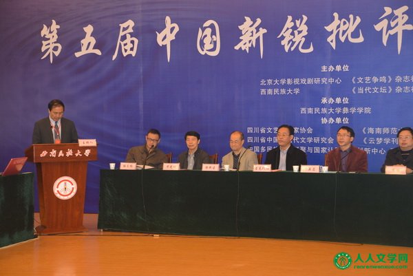 人人文学网讯:2015年11月15日,由谭五昌(北京师范大学)、陈旭光(北京大学)、柳忠秧(湖北省文学艺术院)、李遇春(华中师范大学)、谢有顺(中山大学)等五位学者与新锐批评家联合发起的“第五届中国新锐批评家高端论坛”在成都西南民族大学隆重举行。本次论坛由北京大学影视戏剧研究中心、西南民族大学、《文艺争鸣》杂志社、《当代文坛》杂志社主办,由四川省文艺评论家协会、四川省中国现当代文学研究会、中国多民族文化凝聚与国家认同协同创新中心、《海南师范大学学报》、《云梦学刊》、国际汉语诗歌协会协办,由西南民族大学彝学学院承办。