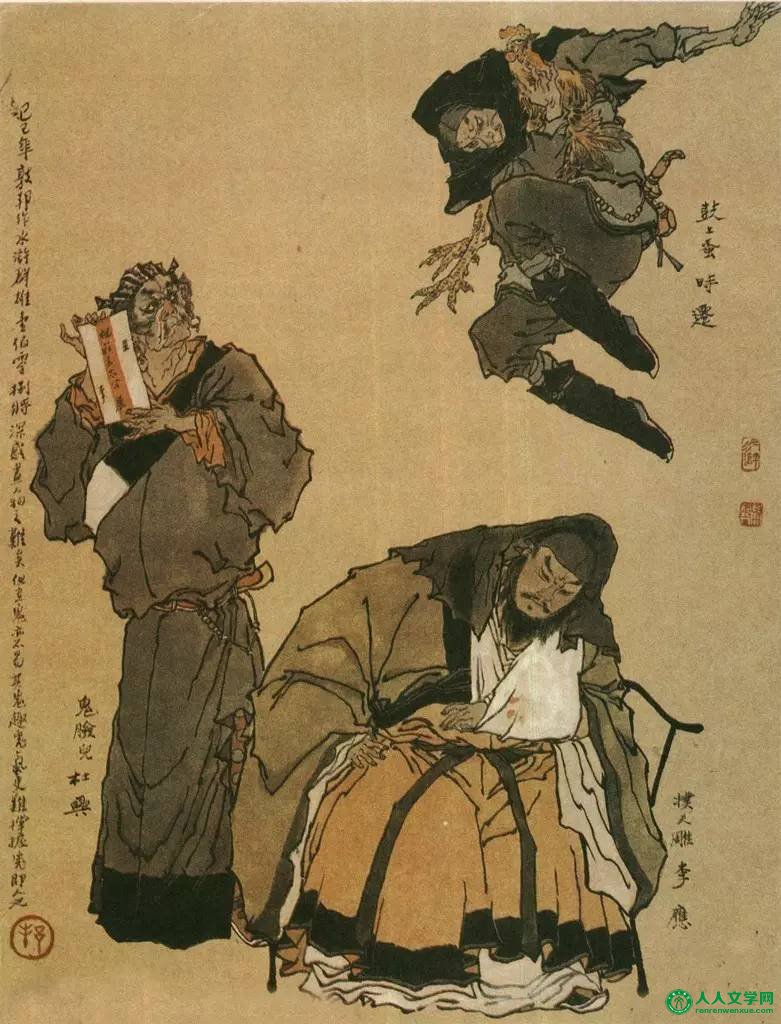 《水讲》一百零八人多数的绰号并不是很精彩。宋江绰号“呼保义”不知是什么意思。龚开的画赞称之曰“呼群保义”,近是“增字解经”。他另有个绰号“及时雨”,是个比喻,只是名实不符。宋江并没有在谁遇到困难时给人什么帮助,倒是他老是在危难之际得到别人的解救。“黑旋风李逵”的绰号大概起得较早,元杂剧里就有几出以“黑旋风”为题目的,这个绰号只是说他爱向人多处排头砍去,又生得黑,也形象,但了无余蕴。“霹雳火”只是说这个人性情急躁。“豹子头”我始终不明白是什么意思。倒是“菜园子张青”虽看不出此人有多大能耐,却颇潇洒。 不过《水浒》能把一百零八人都安上一个绰号,配备齐全,也不容易。 绰号是特定的历史时期的文学现象和社会现象。其盛行大概在宋以后、明以前,即《水浒传》成书之时。宋以前很少听到。明以后不绝如缕。如《七侠五义》里的“黑狐狸智化”,窦尔墩“人称铁罗汉”。但在演义小说中不那么普遍。从文学表现手段(虽然这是末技)和社会心理,主要是市民心理的角度研究一下绰号,是有意义的。 -配图为戴敦邦绘水浒人物- |
