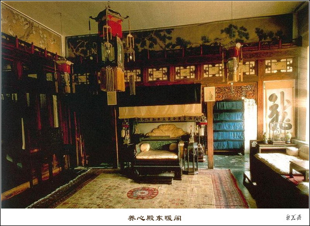 清朝自雍正之后养心殿成为皇帝在故宫内的实际居所。清同治年间慈禧、慈安二太后垂帘听政就在养心殿东暖阁。 在后三宫东西庑,还有为皇帝存储冠、袍、带、履的端凝殿,放置图书翰墨的懋勤殿。南庑有皇子读书的上书房,有翰林学士承值的南书房,以及管理宫廷日常生活的处所。此外还有左右对称的日精门、月华门、龙光门、凤彩门、基化门、端则门、隆福门、景和门,通妃子居住的东西六宫。这种左右对称的平面布局,也是中国古代建筑的特征之一。 内廷东侧的宁寿宫是当年乾隆皇帝宣布退位后当太上皇养老皇宫,花费一百一十万两银修建。