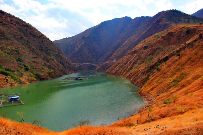 先前只说了“走上线”,把“走下线”说忘了。“走下线”即指经永仁县城永定镇出发经猛虎镇再经永兴乡的万马到湾碧。这一路好在山没有那么高峻险恶,而且过了万马大桥就是库区公路,一路滨江,溯流而上。