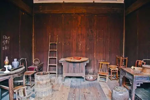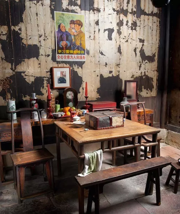 室内也原封不动地保存了原先的样子:旧时上海的士林布染料和香烟的招贴画,文化大革命中的毛主席语录,以及安放在墙上的播放了20几年乡村广告和革命歌曲的小喇叭……这一件件小东西无不从一个家庭的角度折射出中国字晚清以来200多年间的历史。时间在这里好像凝固了。