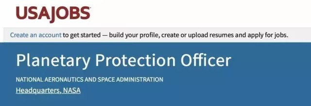 敲黑板!!上文中提到的NASA,也就是美国航空航天局。大家对NASA的认知大部分存在于好莱坞大片里,神秘,高科技,精英人士,牛叉的能上天,和太阳月亮肩并肩~ 最近,这个神秘的组织发了一个招聘信息,他们要招一位星球保卫官,主要工作是负责防止外太空的细菌生物入侵地球。