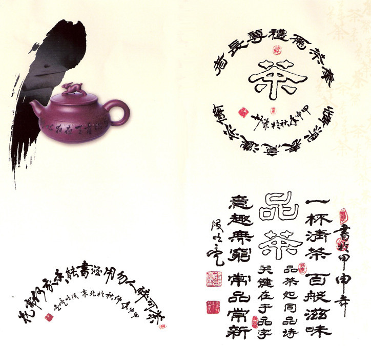 段老将品茶的身体行为转化为书法的创作行为,在这里单纯的感官享受就转变成为精神的审美追求,蕴含在茶背后的文化价值就是支撑茶画最有力的框架。
