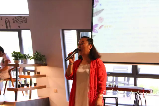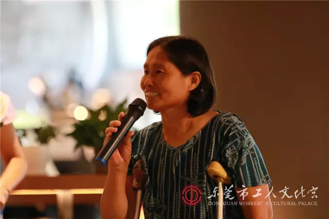 主持人在现场向作者韩芳提问,从故乡伊犁离开,到东莞这个南方城市扎根,她留在东莞的原因是什么?