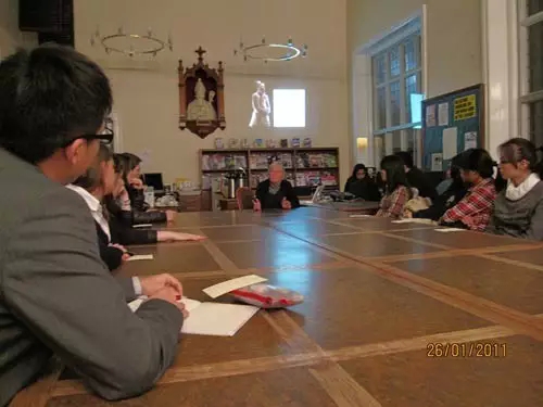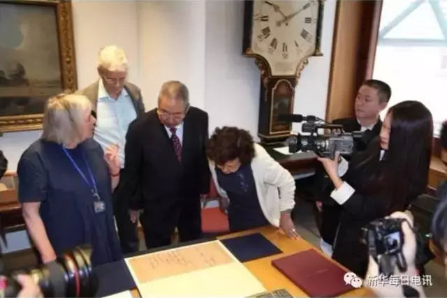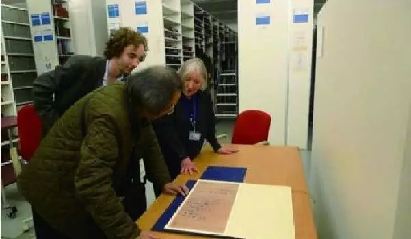 在大英图书馆,吴芳思向都本基一行展示珍贵的馆藏东方文献