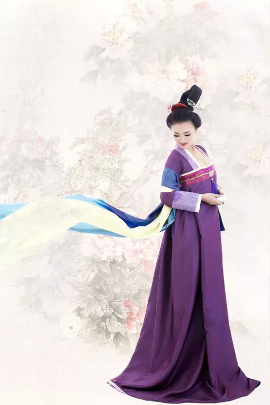 大袖衫,大气飘逸。充分反映了唐代繁华、恢弘、大气的文化特征,呈现出当时华丽开放的审美风尚。