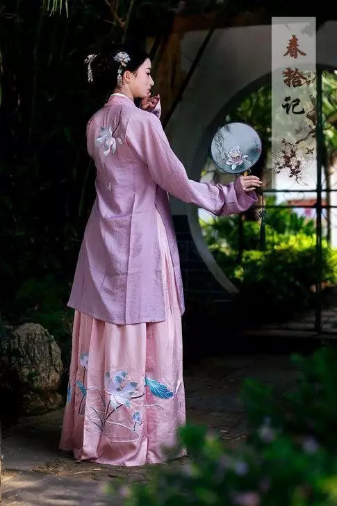 明代的贵妇多是穿红色大袖的袍子,一般妇女只能穿桃红、紫绿及一些浅淡的颜色。平日常穿的是短衫长裙,腰上系着绸带,裙子宽大,样式很多,像百褶裙、凤尾裙、月华裙等。