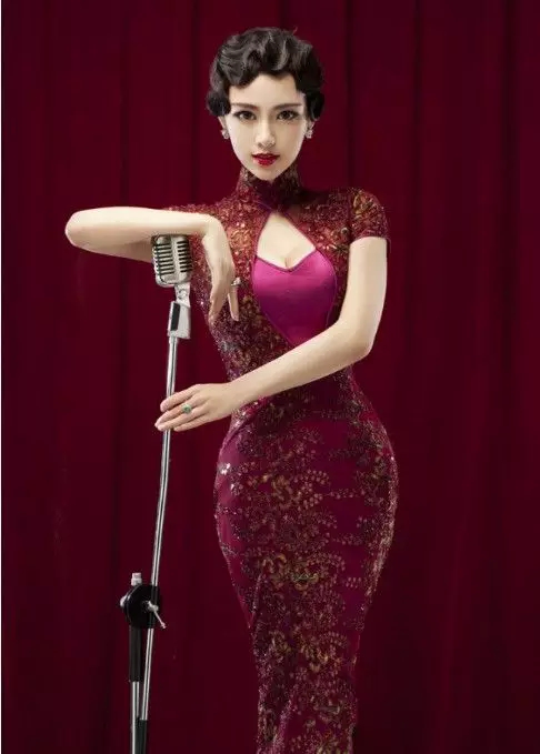 中期的旗袍显其女性自由独立的个性,腰部逐步收紧显出女性整个身体胸、腰、臀的自然曲线美。