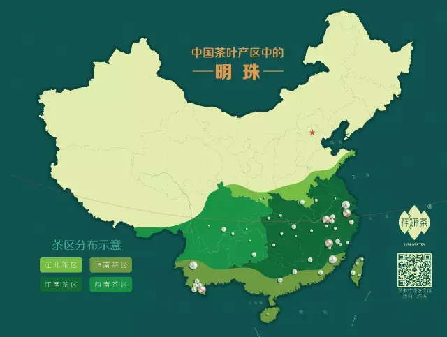 下图《中国茶叶产区中的明珠》中,闪闪发亮的那些“明珠”,你能猜出来是哪些吗?(祥源茶)