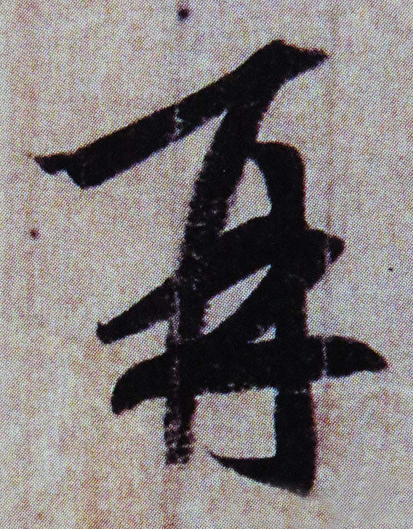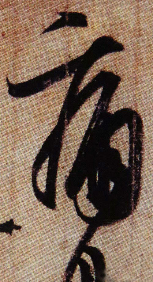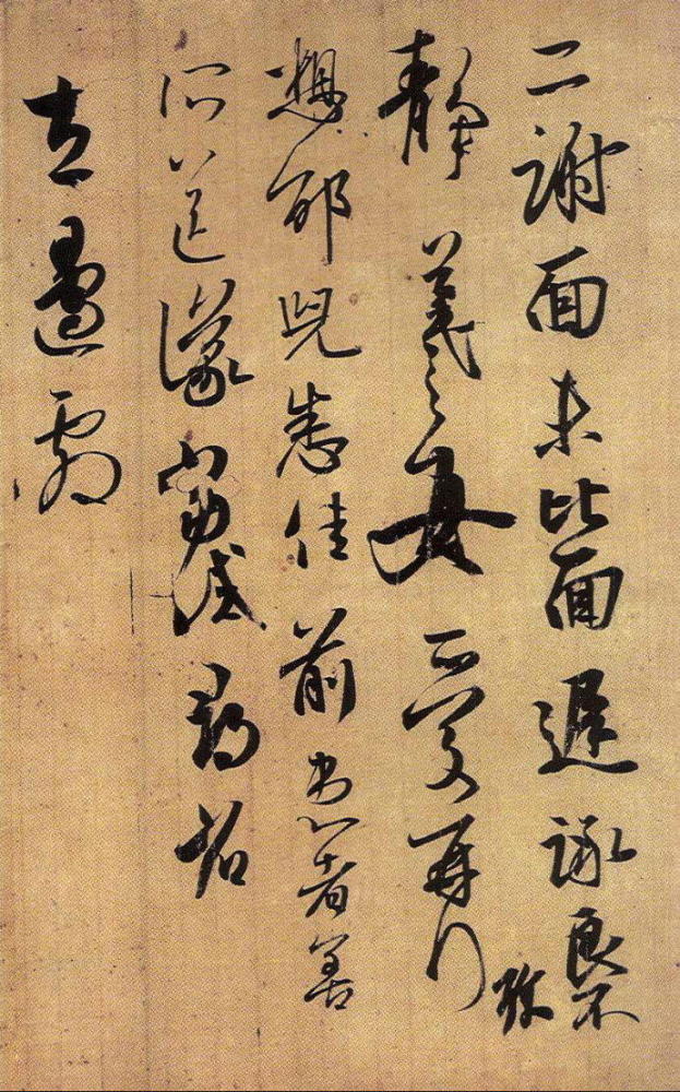 《丧乱帖》笔法丰富多变。方笔、圆笔、中锋、侧锋、直线、弧线、重按、轻提等,极尽变化之能事,线条粗细、速度快慢等对比强烈且统一和谐。如线条中,重者如“面”而非“线”,轻者则若游丝、细线,幅度竞有三五倍之大。另外,此间有大量的方笔,书写沉着痛快而不平庸板滞。《二谢帖》用笔爽利,遒劲之力尽显。用笔之难,在于笔毫运行短距离内作出复杂的铺毫、调锋、折转等书写动作。在《二谢帖》中,第一个“面”自第一笔开始就以方笔书写,之后第二笔连接着第三笔为方笔,似用篆刻中的“冲刀法”写成,劲挺峻拔。连续的方笔书写,在发笔处作翻切动作,左行笔后向右下再次翻切成第三个方笔,如兔起鹘落,干净利索,这才叫心手相应,妙笔生花。