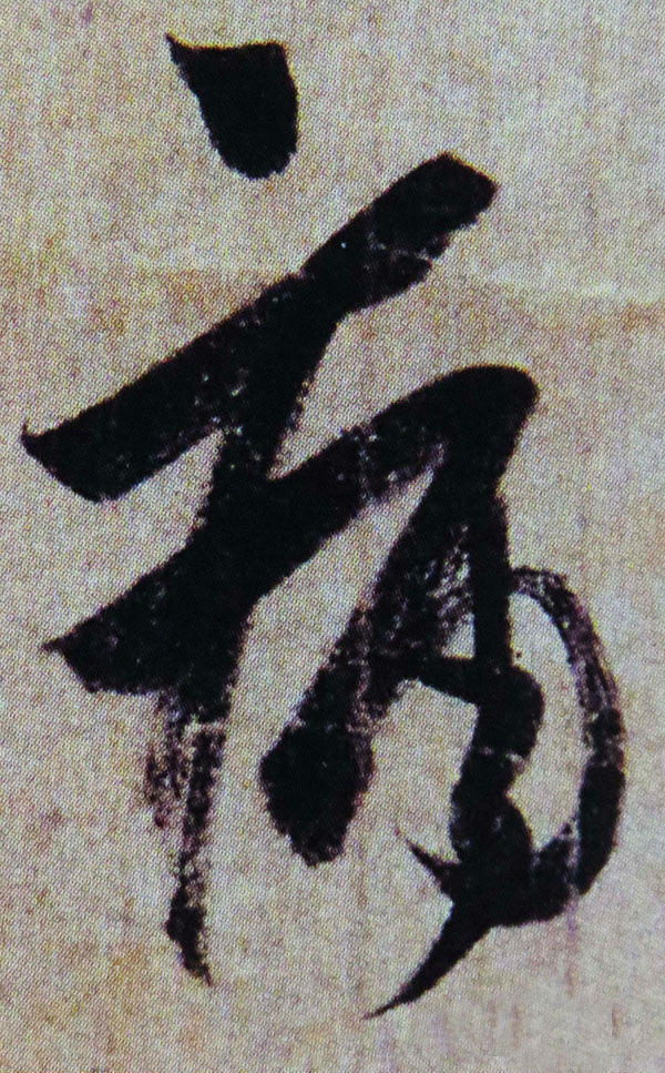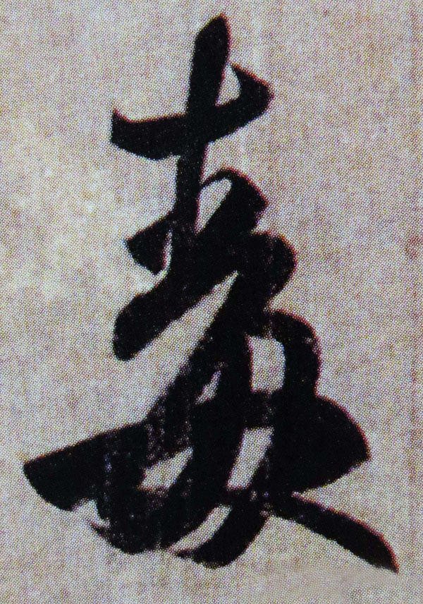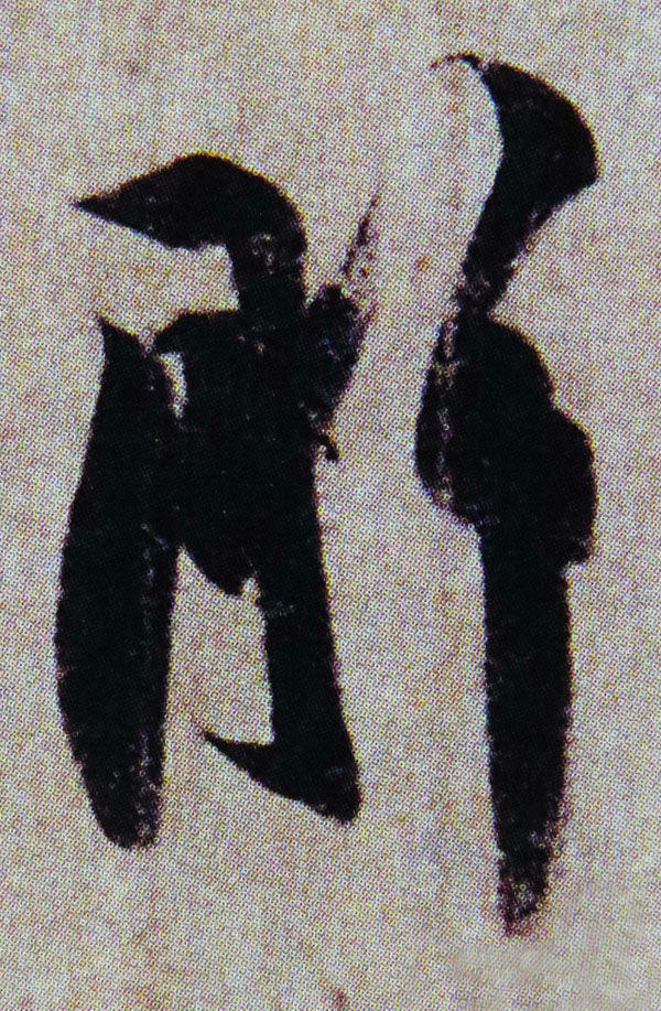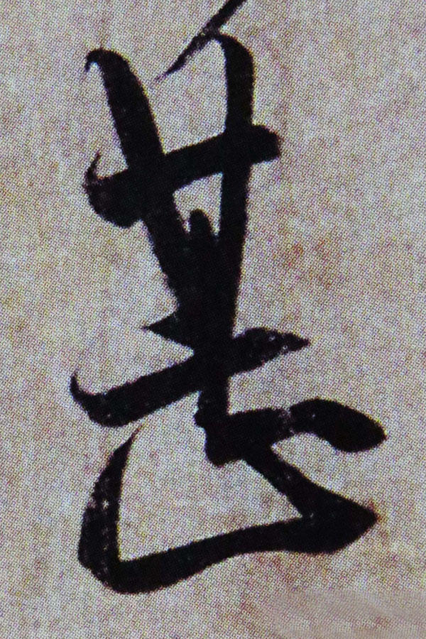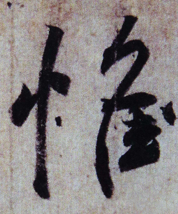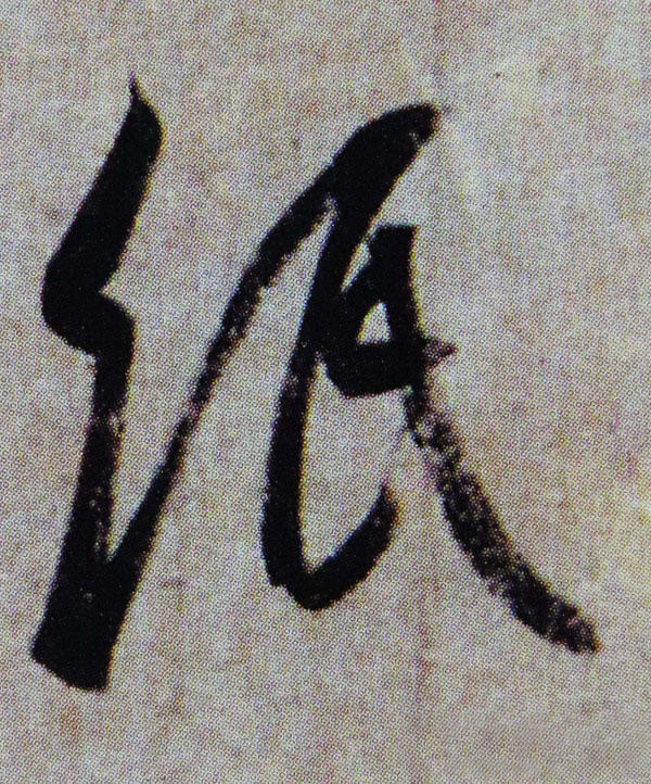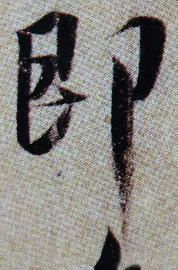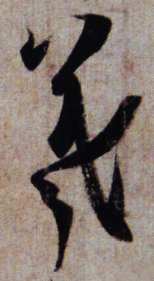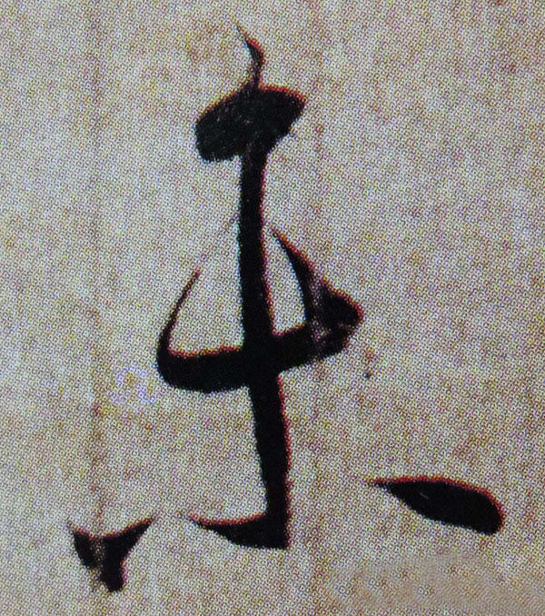 假使我们不把作品中的点画当作线,而是书作各种形状的块而来观察,便可以发现这些块面形状都比较复杂。块面的边线是一些复杂的曲线和折线的组合,曲线遒美流转,折线劲健挺拔,同时,点画具有强烈的雕塑感,墨色似乎有从点画边线往外溢出的趋势,沉著而饱满。这种丰富性、立体感都得之于笔毫锥面的频频变动。作品每一点画都像是飘扬在空中的绸带,它的不同侧面交迷著、扭结著,同时呈现在我们眼前;它仿佛不再是一根扁平的物体,它产生了体积。这一段的侧面暗示著另一段侧面占有的空间。这便是人们津津乐道的“晋人笔法”。它是绞转所产生的硕果。