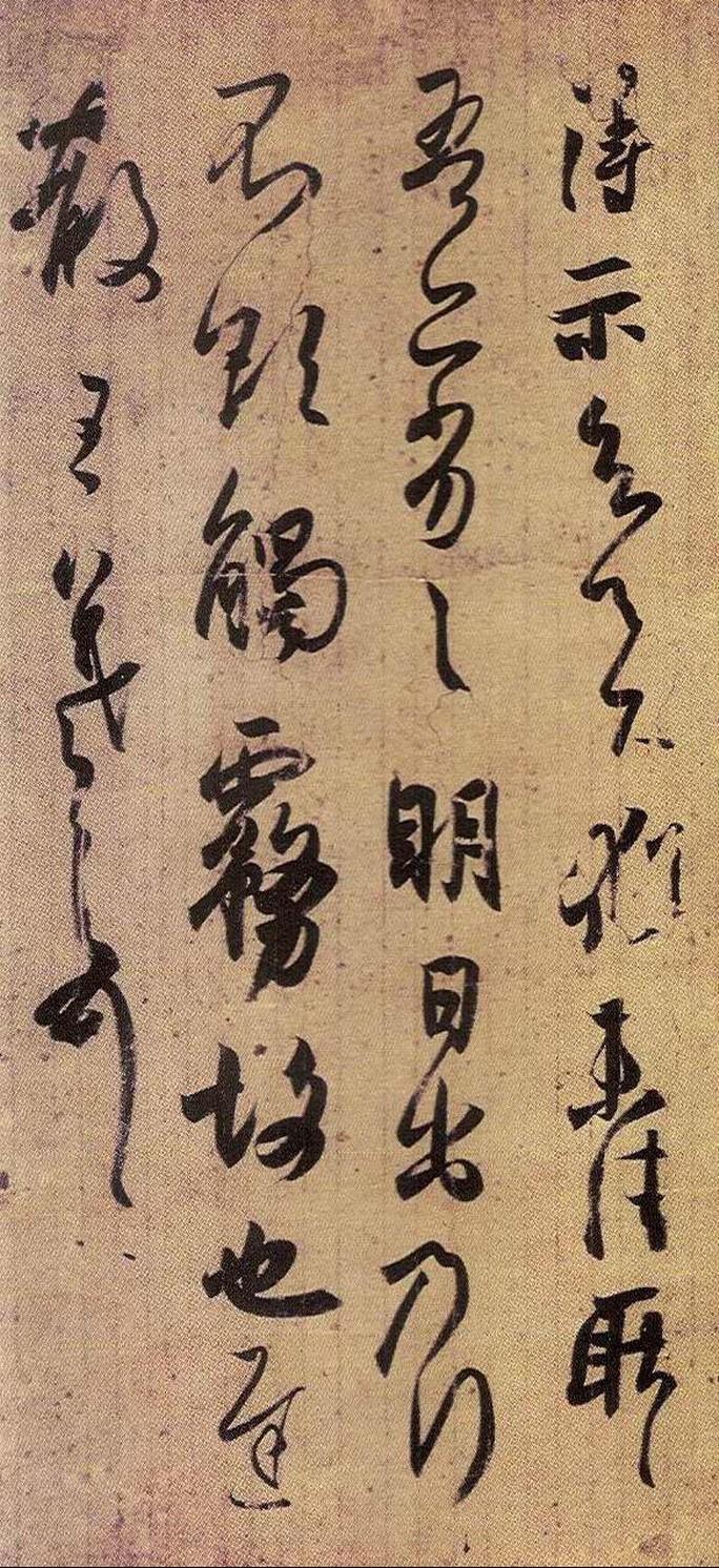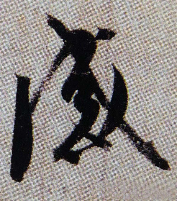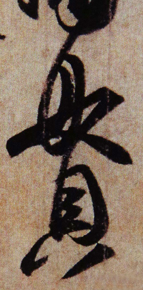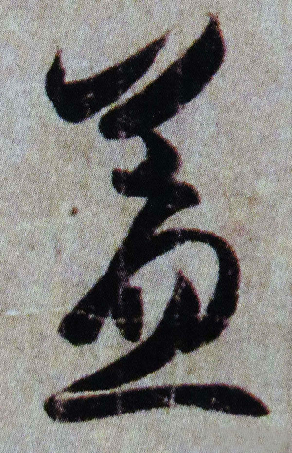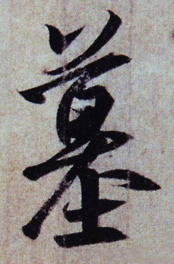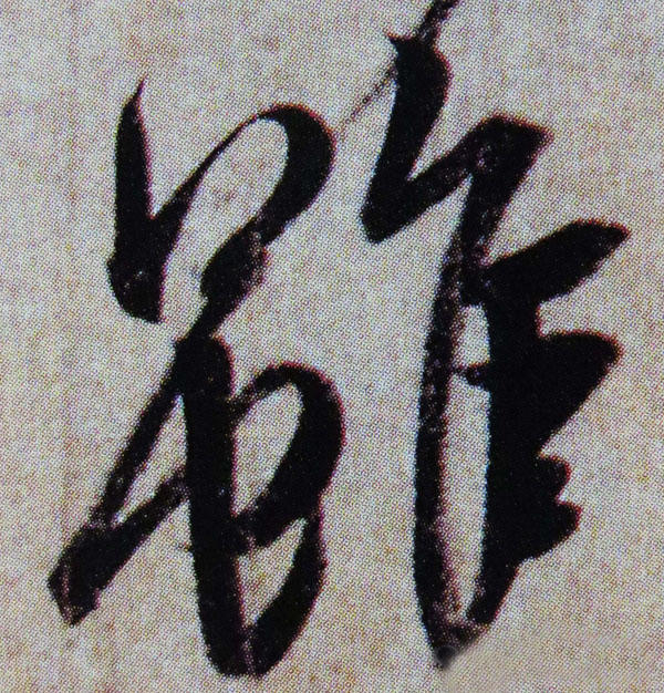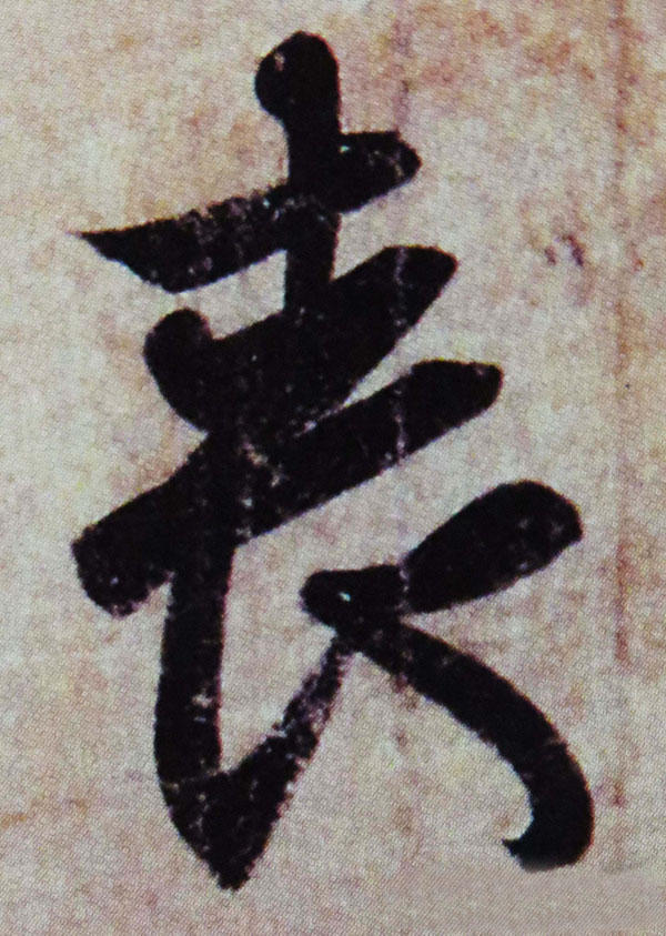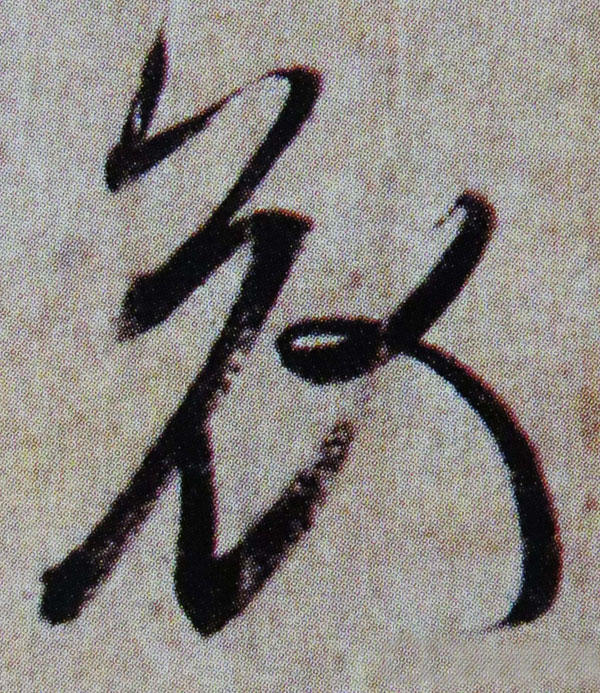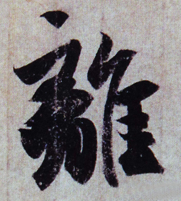 假使我们不把作品中的点画当作线,而是书作各种形状的块而来观察,便可以发现这些块面形状都比较复杂。块面的边线是一些复杂的曲线和折线的组合,曲线遒美流转,折线劲健挺拔,同时,点画具有强烈的雕塑感,墨色似乎有从点画边线往外溢出的趋势,沉著而饱满。这种丰富性、立体感都得之于笔毫锥面的频频变动。作品每一点画都像是飘扬在空中的绸带,它的不同侧面交迷著、扭结著,同时呈现在我们眼前;它仿佛不再是一根扁平的物体,它产生了体积。这一段的侧面暗示著另一段侧面占有的空间。这便是人们津津乐道的“晋人笔法”。它是绞转所产生的硕果。
