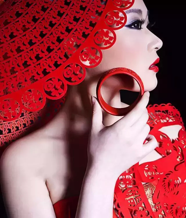 传统手艺剪纸,不再是墙上窗上的一页喜庆。现代,剪纸是发簪,是云肩,是面纱,是足以与中国女性相映衬的绝配。